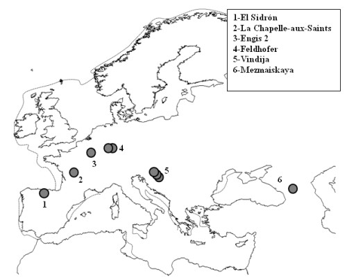 ¿Qué información nos aporta la novena secuencia de neandertal disponible? En primer lugar, la secuencia de El Sidrón es la primera que proviene de uno de los extremos del rango de distribución de los neandertales, y el neandertal situado a mayor latitud sur (43º 23’) de todos los estudiados con éxito. La Península Ibérica representa el extremo oeste del mundo neandertal y el extremo sur de la distribución europea (hay neandertales más al sur de Europa, como Israel, Irak o Siria). Por este motivo, era vital tener un dato genético de la Península Ibérica, para estar seguros de que los neandertales eran efectivamente tan homogéneos como sugerían los análisis anteriores. Ahora podemos afirmar que los neandertales del suroeste no eran genéticamente diferentes del resto de neandertales, ni eran más semejantes a los humanos modernos. Y hay que tener en cuenta, además, que la Península Ibérica es el escenario propuesto por algunos investigadores como J. Zilhao y E. Trinkaus a partir del niño de Lagar Velho (Portugal) para postular la hibridación con humanos modernos. Por otra parte, en la cornisa cantábrica se encuentran yacimientos como la cueva de El Castillo, que han proporcionado algunas de las fechas más antiguas de Europa para los niveles auriñacienses del paleolítico superior, cercanas a los 40.000 años y por tanto, prácticamente contemporáneas de los neandertales de El Sidrón. Es decir, en el norte de la Península Ibérica habrían coexistido neandertales y humanos modernos durante miles de años y aún así, unos y otros eran genéticamente diferentes.